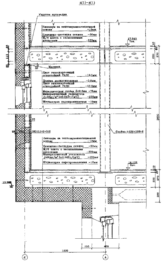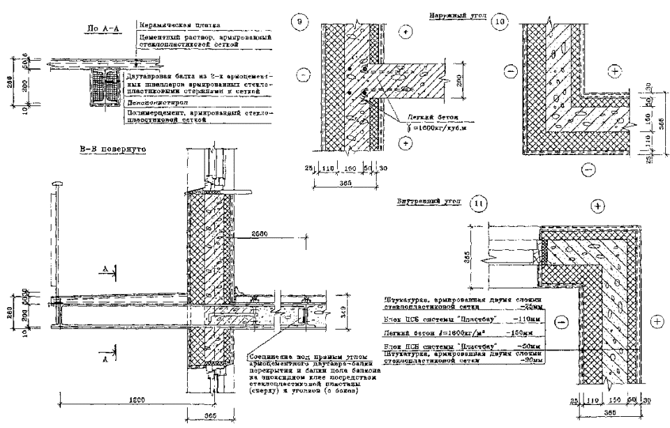- в обрамлении оконных и дверных проемов устроены защитные слои толщиной 100 мм из минераловатных плит;