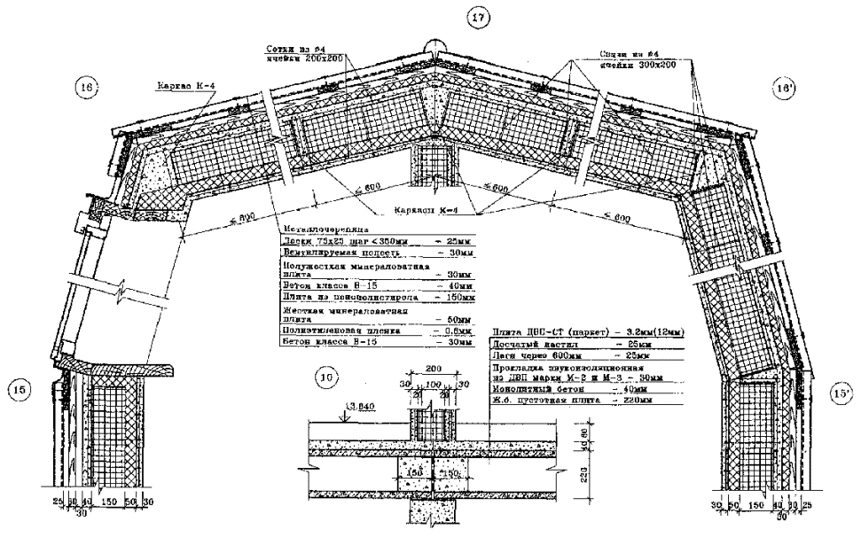 1.7. Для легких наружных ограждений мансардных этажей могут быть использованы гнутый металлический профиль, древесина и монолитный железобетон по оставляемой опалубке. В качестве кровельного покрытия приняты металлочерепица и ондулин.