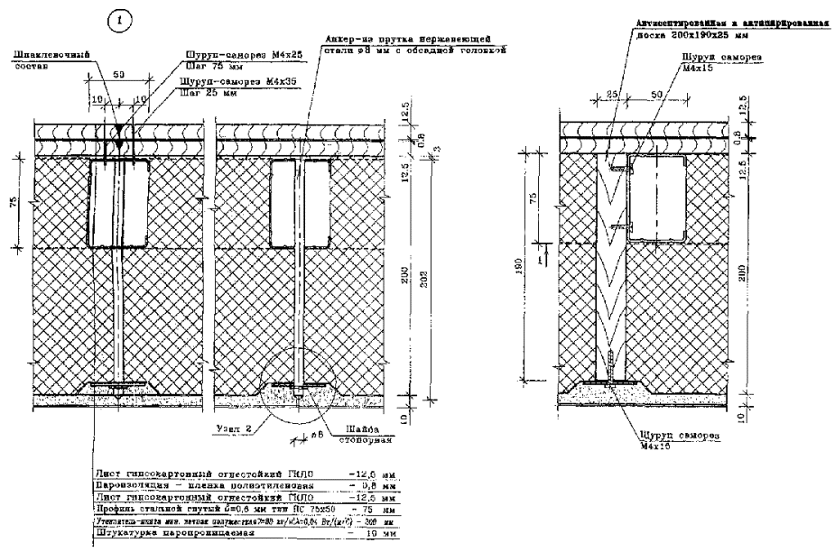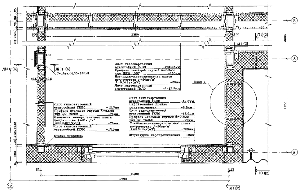 Конструкции и монтажные узлы из этих листов выполнены в соответствии со сводом правил "Ограждающие конструкции с применением гипсокартонных листов. Проектирование, устройство, эксплуатация", М., 1998 г.