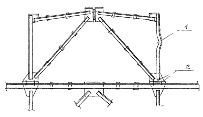 в элементах верхних поясов подстропильных ферм из-за их погнутости нельзя допустить усилие свыше 262 т при расчетном проектном усилии 306 т;