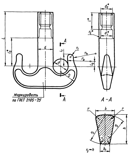 4. В заготовках крюков, изготовляемых методом свободной ковки, допускается в нижней части сечения А-А радиус r не выполнять.