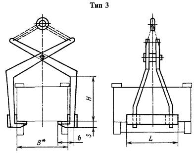 5. Основные параметры и размеры грузозахватных устройств типа 3 должны соответствовать указанным на черт. 3 и в табл. 2 и 3.