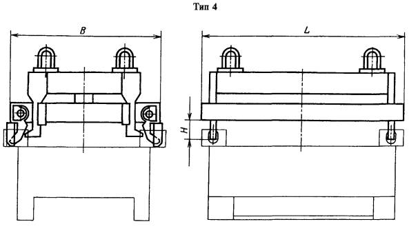 6. Основные параметры и размеры грузозахватных устройств типа 4 должны соответствовать указанным на черт. 4 и в табл. 4.