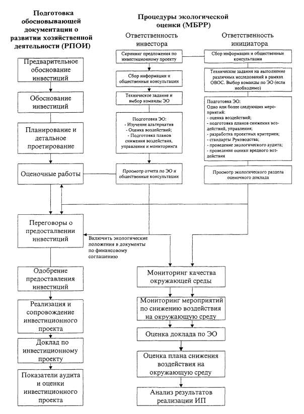 Правила проведения экологической оценки инвестиционных проектов были сформулированы во Временном руководстве по оперативной деятельности РПОИ (утверждено в 1996 г. Минприроды России, Минфином России, Минэкономики России), пересмотренном, исправленном и дополненном в 2000 г.