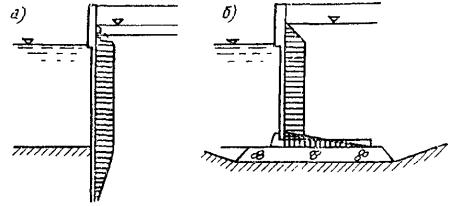 б) зонального распределения строительных материалов в составе конструкции (например, дерево в подводной зоне и железобетон в зоне переменного уровня воды и выше);