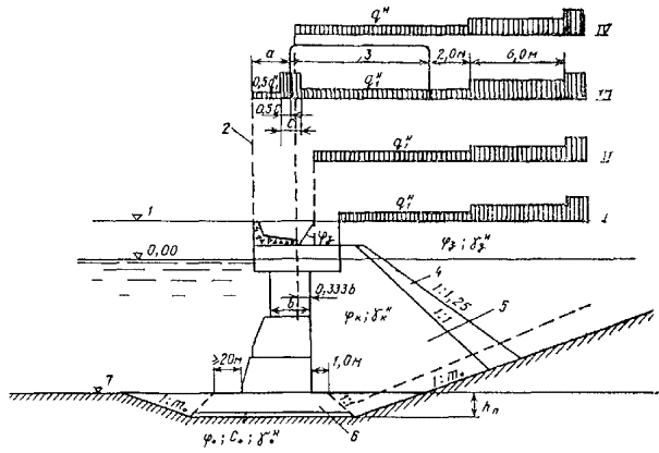 1.3. При разработке проекта причального сооружения необходимо иметь исходные данные, устанавливаемые в соответствии с генеральным планом и технологической частью проекта, естественными условиями участка строительства, а также с условиями производства работ (согласно пп. 1.4-1.6 настоящей Инструкции).