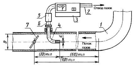 3.2. Воздух рабочей зоны стендового помещения должен соответствовать ГОСТ 12.1.005-76. Не допускается сброс отработавших газов дизеля после прохождения ими дымомера, в воздух рабочей зоны стендового помещения. Для этого дымомер должен быть оборудован газоотводящей трубой (см. поз. 2 на схеме), выходной конец которой должен быть вынесен за пределы рабочей зоны стендового помещения.