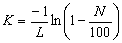 где NL - коэффициент ослабления светового потока отработавшими газами, измеренный по вспомогательной шкале дымомера, имеющего эффективную базу L, %;