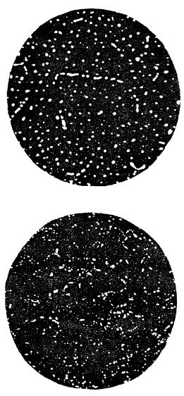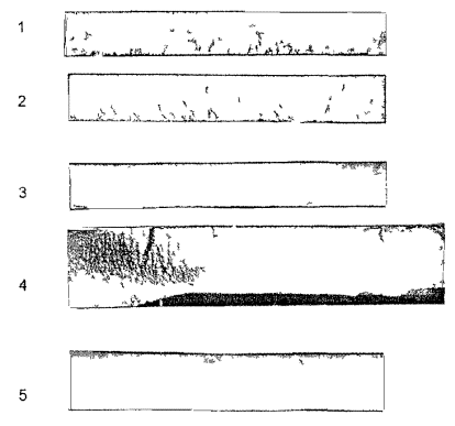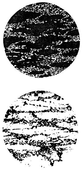 По шкале № 2 микроструктуру карбидной неоднородности стали оценивают 10 баллами, причем каждый балл имеет два эталона микроструктур. Верхняя микроструктура предназначена для оценки карбидной неоднородности стали на образцах после термической обработки (закалка - отпуск).