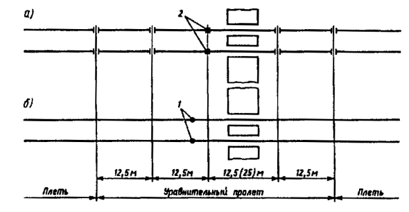 В случае примыкания бесстыкового пути к звеньевому или к стрелочным переводам, не ввариваемым в плети, на примыкании должны быть уложены две пары уравнительных рельсов длиной по 12,5 м.