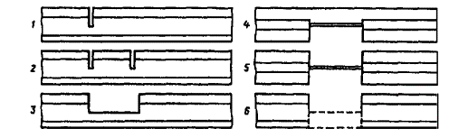 2.4.3. В местах примыкания бесстыкового пути с железобетонными шпалами к участкам звеньевого пути с деревянными шпалами, к стрелочным переводам с деревянными брусьями, башмакосбрасывателям, уравнительным приборам и т.п. железобетонные шпалы следует укладывать по схемам, показанным на рис. 2.1, причем на конце первого звена уравнительного пролета, примыкающего к плетям бесстыкового пути, укладываются четыре деревянные шпалы.