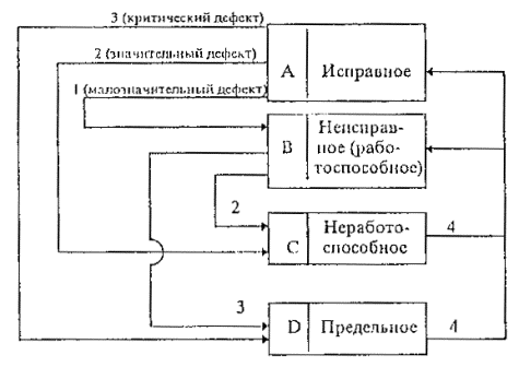 2. Техническое состояние - совокупность подверженных изменению в процессе производства или эксплуатации свойств объекта, характеризуемая в определенный момент времени признаками, установленными технической документацией на этот объект. Видами технического состояния являются исправность, работоспособность, неработоспособность, предельное состояние и др.