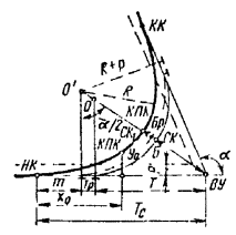 - круговых кривых при углах, кратных углам крестовин (табл. 17.9)