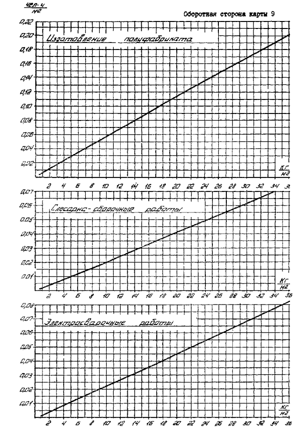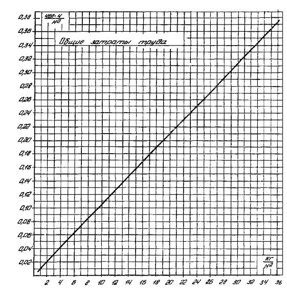 2.4. Числовое значение нормативов затрат труда общих и по технологическим переделам - определяют по кривой графиков (карты 1-15): для каждого графика принят свой масштаб.