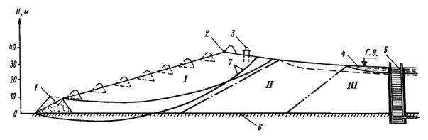 1, 2, 3 - зоны; 4 - карьерный грунт