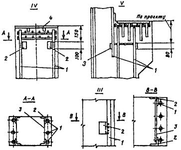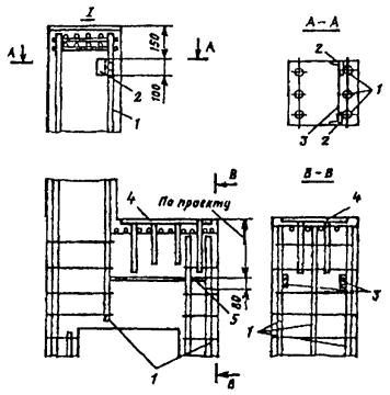 Узлы II и III предусматривают связь арматуры ригеля с арматурой колонн. Эти узлы выполняются только в тех колоннах, которые используются для объединения железобетонных конструкций.