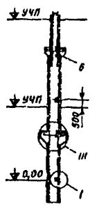 Примечание. Обозначения: 1 - вертикальная арматура колонны; 2 - закладные (дополнительные) изделия для присоединения заземляющих проводников; 3 - закладное изделие консоли типовой колонны; 4 - перемычка для связи изделия 3 с вертикальной арматурой колонны; 5 - закладные изделия в типовой колонне; 6 - соединительная перемычка диаметром 12 мм; УЧП - уровень чистого пола.
