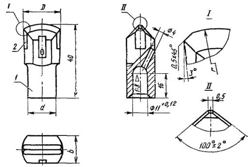 1 - корпус коронки; 2 - пластинка твердосплавная по технической документации, утвержденной в установленном порядке