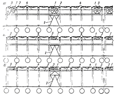 Горизонтальные нагрузки от масс на гибких подвесках, температурные климатические воздействия, ветровые нагрузки, динамические воздействия от оборудования и транспорта, тормозные и боковые усилия от движения кранов при этом не учитываются.