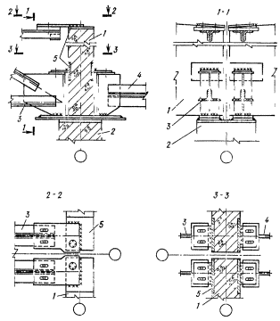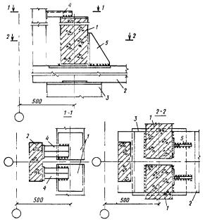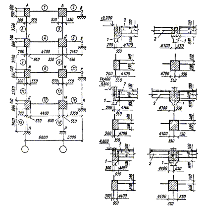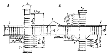 Примечание. В многоэтажных зданиях со сборными каркасами из линейных элементов допускается устраивать стыки ригелей с колоннами в местах их соединения между собой при условии обеспечения надлежащей прочности стыков.