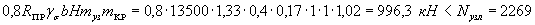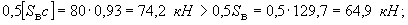 Nв= 242,5×0,7/1,3 =130,6 кН (при действии вертикальной сейсмической нагрузки вверх).