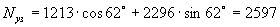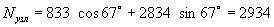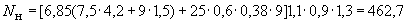 Nн =(6,85×6,9+25×0,6×0,38)1,1×0,9×1,3=68 кН (вертикальная сейсмическая нагрузка направлена вниз).