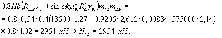 I. Вертикальная сейсмическая нагрузка направлена вниз. Nн=462,7 кН; М= 357 кН×м
