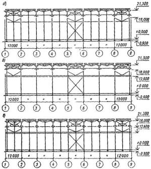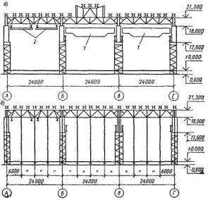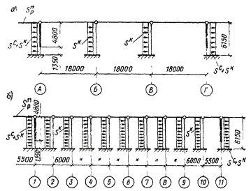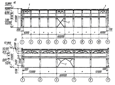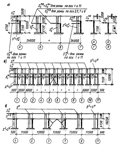 1.1. Настоящее пособие составлено к СНиП II-7-81 «Строительство в сейсмических районах» и распространяется на проектирование производственных зданий с размерами в пределах габаритных схем по ГОСТ 23837-79 и ГОСТ 24337-80 с железобетонными, стальными и смешанными (с железобетонными колоннами и стальными стропильными конструкциями) каркасами, применяемыми в массовом промышленном строительстве в районах с сейсмичностью 1, 8 и 9 баллов.