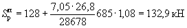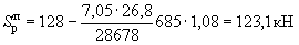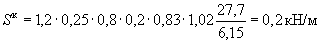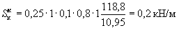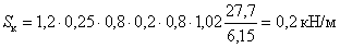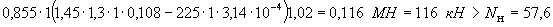 Nн=(6,85×6×1,5+25×0,6×6×0,38)1,1×0,9×1,3=123 кН (при действии вертикальной сейсмической нагрузки вниз);