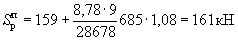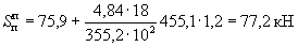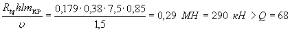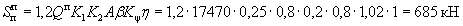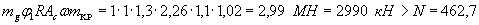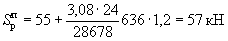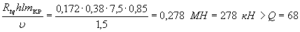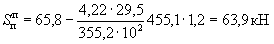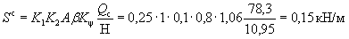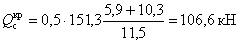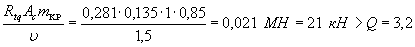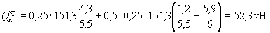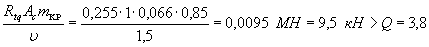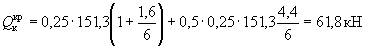 где K1=0,25 - по п. 1 табл. 4; K2=0,8 - по п. 2 табл. 5; Qк=N=221 кН; А=0,4 - при расчетной сейсмичности 9 баллов.