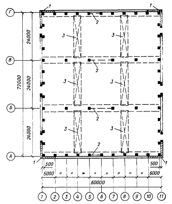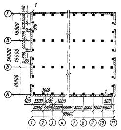 Здания рекомендуется проектировать прямоугольной формы в плане с параллельно расположенными пролетами, без перепада высот смежных пролетов и без входящих углов.