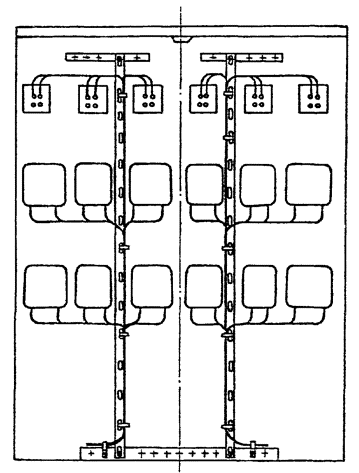 2) при необходимости параллельной прокладки проводов измерительных цепей с цепями другого назначения (питания, сигнализации, блокировки и т.п.), провода измерительных цепей должны быть удалены. Не допускается совместная прокладка указанных проводов в одном стволе или ответвлении жгута. Вертикальные стволы в этом случае рекомендуется прокладывать в разных стойках каркаса щита.