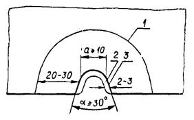 4.22. Размеры разделки на заготовке контрольного образца и схема его испытания приведены на рис. 16, 17, 18.