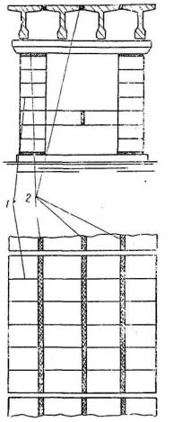 Для блоков составных опор применяют тяжелый бетон марки не менее 300, а для элементов опор, расположенных выше горизонта ледохода, - керамзитобетон марки не менее 200.