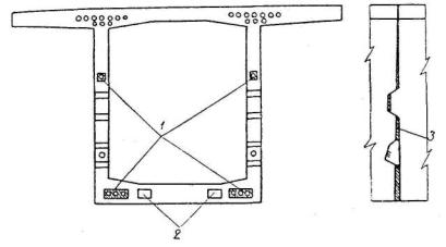 Примечания. 1. При применении для блоков пролетных строений бетона марки более 400 для омоноличивания продольных швов между балками допускается бетон марки 400, если по расчету не требуется большей прочности.