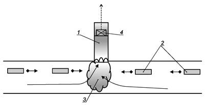 1 - ствол; 2 - струйные вентиляторы; 3 - очаг пожара;