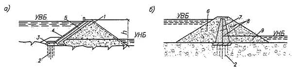 откоса; УВБ - уровень верхнего бьефа; УНБ - уровень нижнего бьефа