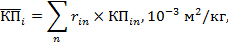 Если почвенный покров на территории хозяйства или в лесных массивах сформирован различными группами почв, то в дозовых расчетах используют средневзвешенное по площадям, занимаемым этими почвами, численное значение коэффициента перехода - КПi среднее. Величину КПi среднее, определяют отдельно для каждого продукта по формуле: