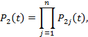 т.е. Р2(t) равна наименьшему значению из P2j(t) - вероятностей невыхода за допустимые пределы по всем n параметрам функционирования.