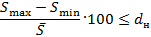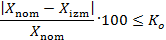|Xizm1 - Xizm2|/0,5(Xizm1 + Xizm2) × 100 < Kк |