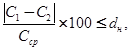 dн - норматив контроля в относительной форме (допустимое расхождение результатов двух параллельных измерений), соответствующий вероятности 0,95;