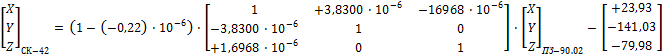 Приложение А. Для элемента трансформирования «Преобразование координат из системы координат ПЗ-90.02 в референцную Систему координат 1942 года» |