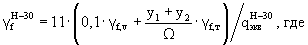 γf,v; γf,т - коэффициенты надежности для распределенной части и тележки нагрузки АК; Ω - площадь линии влияния; y1 и y2 - ординаты линии влияния под осями тележки АК; qH-30экв - эквивалентная нагрузка для колонны Н-30.