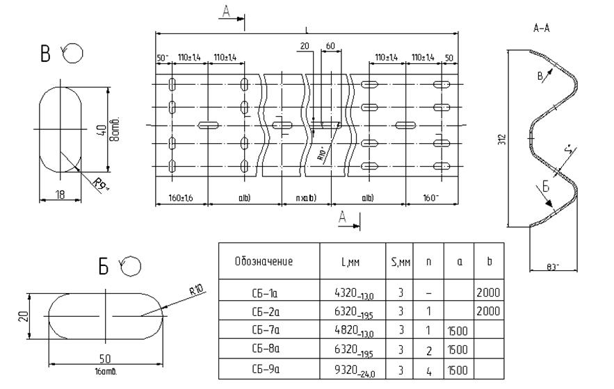 Секция балки СБ-2а Стойка СДЕ-3 Пластина ПЛ Консоль жесткая КЖЕ-1 Связь продольная СП-2 Световозвращатель дорожный СДО-М |