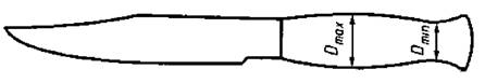 - разница между максимальным диаметром в средней части бочкообразной рукояти и минимальным диаметром в области навершия более 8 мм (рисунок 1).