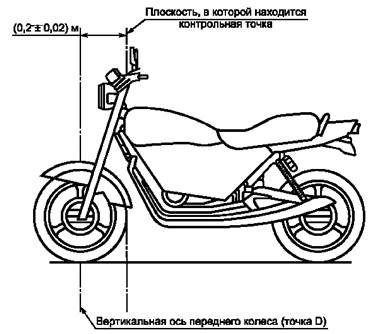 на расстоянии (0,2 ± 0,02) м за вертикальной осевой линией переднего колеса транспортного средства (точка D, указанная в дополнении 4 к настоящему приложению) для двухколесных транспортных средств».