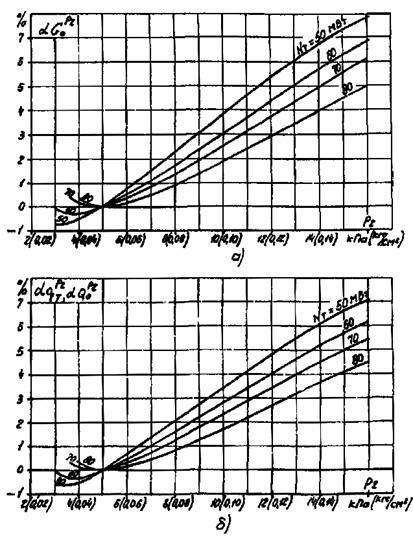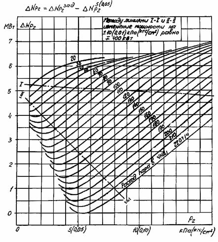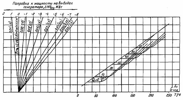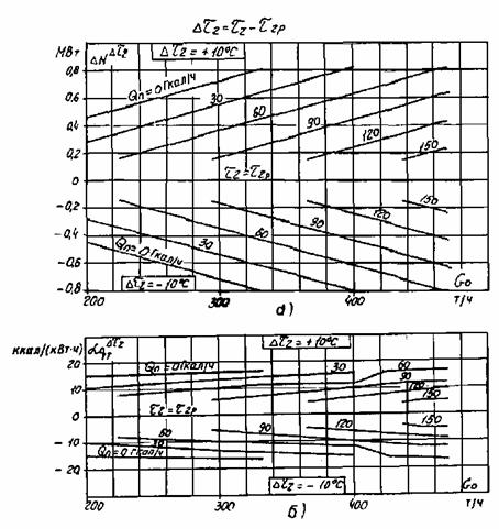 Рис. 10. Поправки на отклонение давления пара в камере производственного отбора от номинального на ±0,1 МПа (1 кгс/см2) при режимах с регулируемыми отборами: