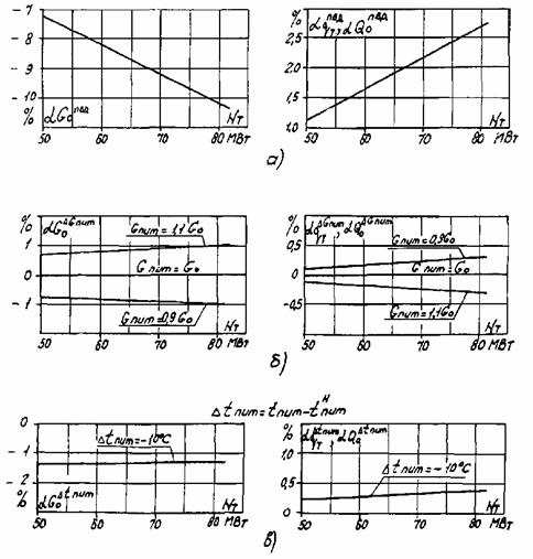 а - к мощности турбины; б - к удельному расходу теплоты