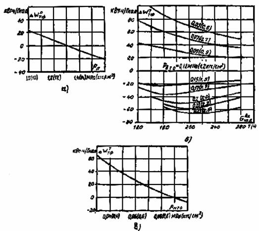 Рис. 16. Поправки на отклонение давления пара в камерах регулируемых отборов к удельным выработкам электроэнергии по теплофикационному циклу: