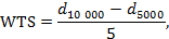 Угол наклона кривой колееобразования WTS, мм/1000 циклов, вычисляют по формуле